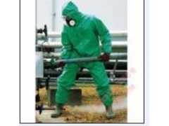 斯噴霧致密型防護(hù)服,綠色PVC帶襯防化服,帶頭罩、彈性手腕和腳腕。拉鏈上有2個(gè)重疊的遮蓋,并有5個(gè)紐扣保護(hù),防化效果好,符合EN465標(biāo)準(zhǔn)(C、D級(jí))。接縫為縫線和超聲波焊接,加強(qiáng)了防護(hù)效果。可有效防酸、堿和其他化學(xué)物質(zhì)??酥兀?39克/米^2。尺寸:身高:182-188cm,胸圍:108-112cm,腰圍:96-100cm。