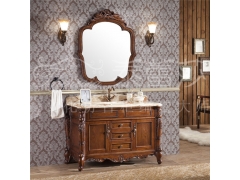 T-9121簡介 材料:采用傳統的進口美國紅橡為主要原材料, 工藝:聘請東陽工匠全手工雕刻,人工擦色,保證浴室柜顏色、質量都能達到仿古效果。 特點:該新品表面紋理清晰、整體輪廓協調大方。 龍頭:龍頭采用了更好的開平產品,九層鍍鉻,全陶瓷閥芯,質量更好,品位更高! 臺面:國產紅龍玉