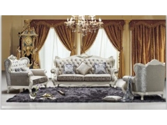 產品說明:進口橡木框架;傳統手工雕刻;貼銀箔;高密度海綿;高檔絨布;環保耐磨油漆。
