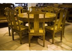 供應臻粹閣金絲楠木餐桌圓桌九件套,金絲楠木古典家具