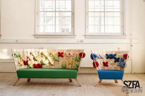 哥本哈根設(shè)計師Ellinor Ericsson曾經(jīng)提出過為什么北歐家具設(shè)計里不能加入有一些紡織元素呢,現(xiàn)在她用自己的設(shè)計給出了一個幾乎完美的答案。她的最新作品XME系列包含椅子和沙發(fā)兩種,傳統(tǒng)的木材是主題材料。在堅硬的木材家具中嵌入柔軟的羊毛編織的布條十字交錯,錯羅有序,別有一番情意,似乎是中國太極思想中以柔克剛的再釋。
