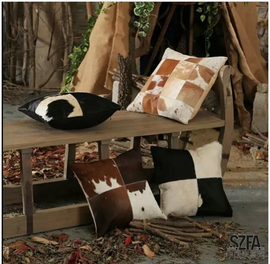 牛皮靠枕是采用純天然優質牛皮毛將方塊形的牛皮或者整張的牛皮經過精密的加工工藝拼接而成的,圖案豐富,紋理清晰,手感極佳。