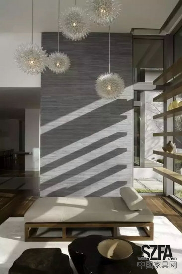 傳統(tǒng)中式風(fēng)格的天花板主要分為天花和藻井,門窗則一般使用欞子做成方格圖案。在簡(jiǎn)約主義風(fēng)行的今天,設(shè)計(jì)師更傾向于將這些元素融入現(xiàn)代風(fēng)格的室內(nèi)設(shè)計(jì),體現(xiàn)對(duì)中式傳統(tǒng)的精神追求。