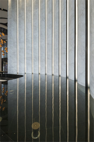 米白與深色石材作配搭,一方面配合自然亦帶來視覺上的強烈反差對比,同時整個空間著墨于「弧線」上,配合光線令空間布局主次分明。