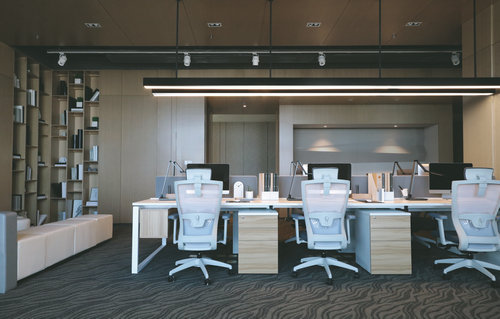 公共辦公區設計以白色為主調,簡約風的家具,細節上呼應能源行業的主題, 會議室紳士灰的水流紋地毯,賦予空間一種靈動與活力。