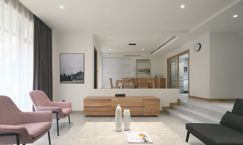細節之處,木質物件以其最自然的紋理,給人無限親切感,不論是簡約風格的空間還是混搭空間,都能用木質家具給空間增添飽滿感和溫馨厚重感。長方形的木質餐桌,展示出濃郁的日式恬淡。木質的餐桌系列與樓梯扶手、門框的木質運用相互點綴,貼近自然。淡淡的木色,搭配純凈的白色,營造出溫馨的居家環境,同時帶來一種和諧、寧靜素雅的美。