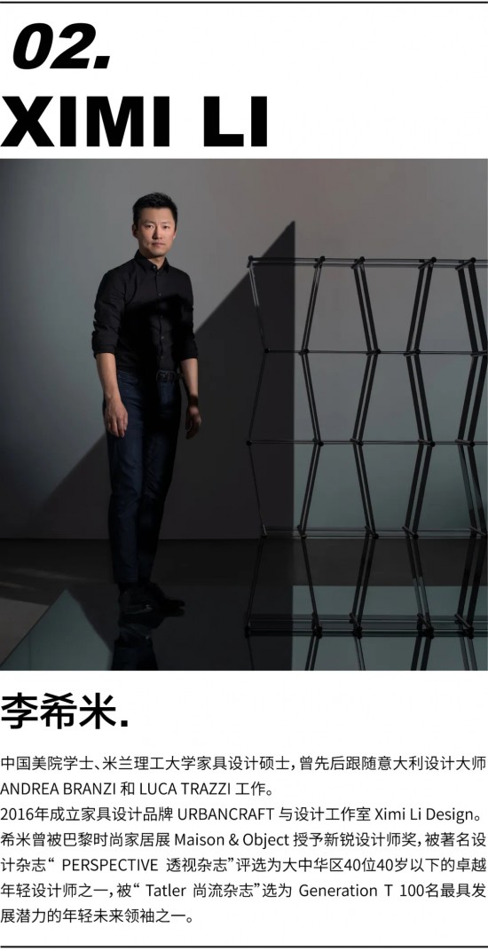 L:今年深圳時(shí)尚家居設(shè)計(jì)周一共有 14 個(gè)展館,其中 6 個(gè)是設(shè)計(jì)導(dǎo)向的主題館。當(dāng)深圳時(shí)尚家居設(shè)計(jì)周向我發(fā)出 11 號館的策展邀請時(shí),雙方的想法十分契合。我在意大利學(xué)習(xí)工作多年,2016年開始經(jīng)營自己的家具品牌 URBANCRAFT,并以設(shè)計(jì)工作室 Ximi Li Design 開啟了與中國原創(chuàng)家具品牌的合作。從海外到國內(nèi),有幸經(jīng)歷了不同的審美與文化體系,同時(shí)也經(jīng)歷了兩國行業(yè)的多樣性。中國的現(xiàn)代家具設(shè)計(jì)行業(yè)才剛剛開始,高速演化的社會(huì)進(jìn)程中,市場也隨之快速變化。展覽方身處行業(yè)里,同樣深深理解行業(yè)處于過渡期的痛點(diǎn),從他們的角度也更能理解許多制造商、品牌方對未來的考量。因此,我們希望所策劃的設(shè)計(jì)坐標(biāo)概念展,能在某種意義上有帶動(dòng)、引領(lǐng)的作用,希望這是一個(gè)有國際視野的展覽,可以被國內(nèi)摸索中的品牌所借鑒。