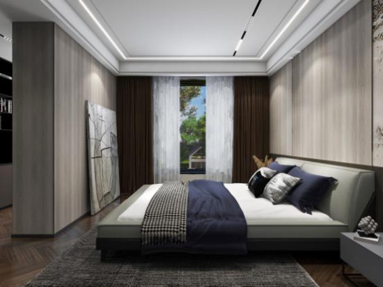 定制墻體隔斷出衣帽間,滿足日常生活所需,家具的裝飾上,CBD家居·黑金 | HG005軟床低調十足,簡練的線條構型呈現優雅感,深淺不一的灰色過渡,顯現色彩美學,舒緩自然,格調自成。