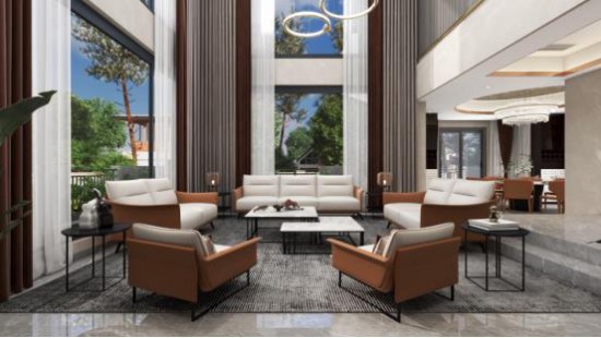 CBD家居·金豹 | J036沙發,米色與愛馬仕橙色相得益彰,烘托出時尚優雅的藝術氣氛,纖薄扶手+飽滿分段式靠包,舒適感與質感并存,帶來優質生活體驗。